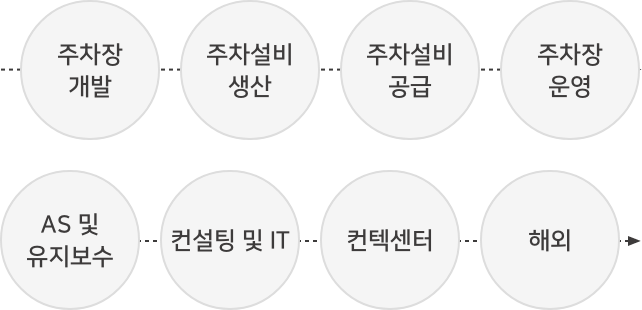 국내 주차장 운영 및 시스템 전문 기업으로 주차장 개발부터 장비생산, 운영, 컨설팅, A/S 등 주차장과 관련된 모든 서비스 제공 국내 최초 주차시스템 렌탈 서비스 시행. 현재 250여 개